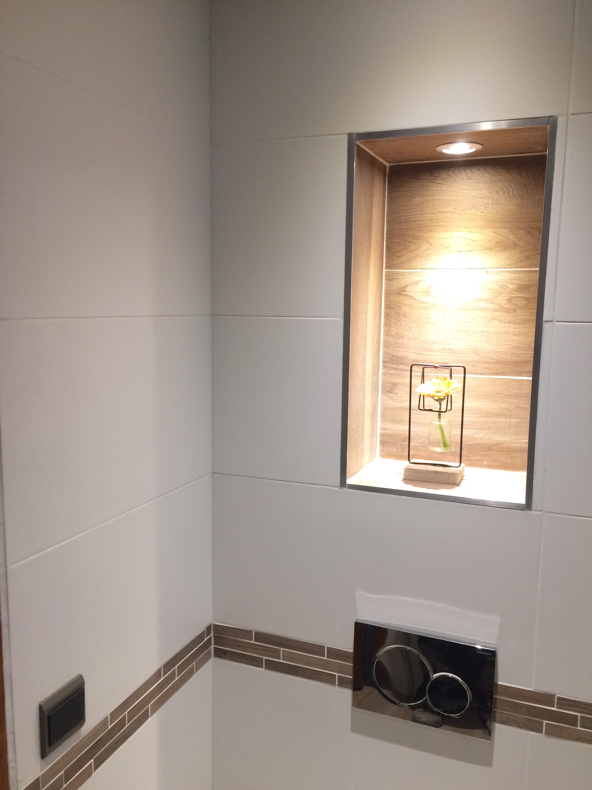 WC suspendu carrelé et lave-main